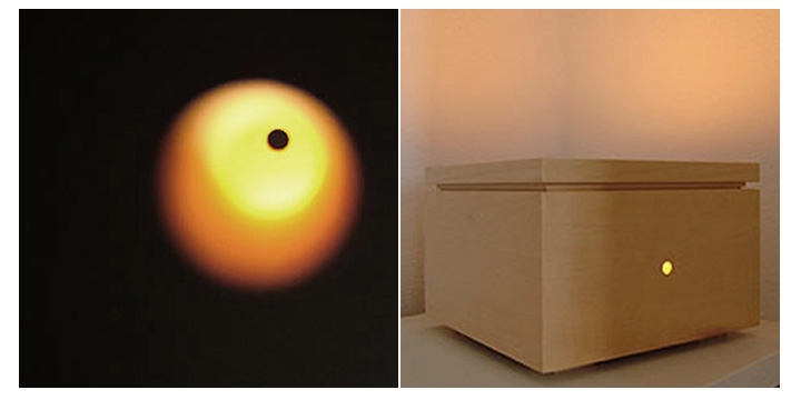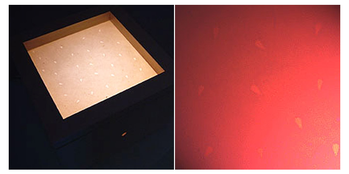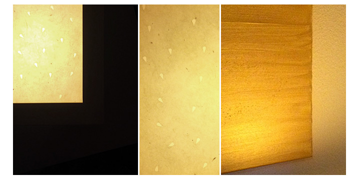 Viele kleine Löcher in Form von Waffel-Tütchen werfen ihre Schatten an die Wand.